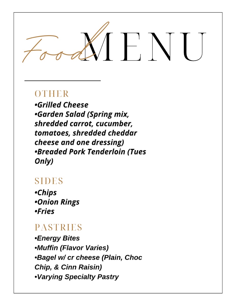Overall, the menu reflects a balanced approach to café dining—familiar and approachable, yet with a careful hint of variety that invites easy enjoyment throughout the day.